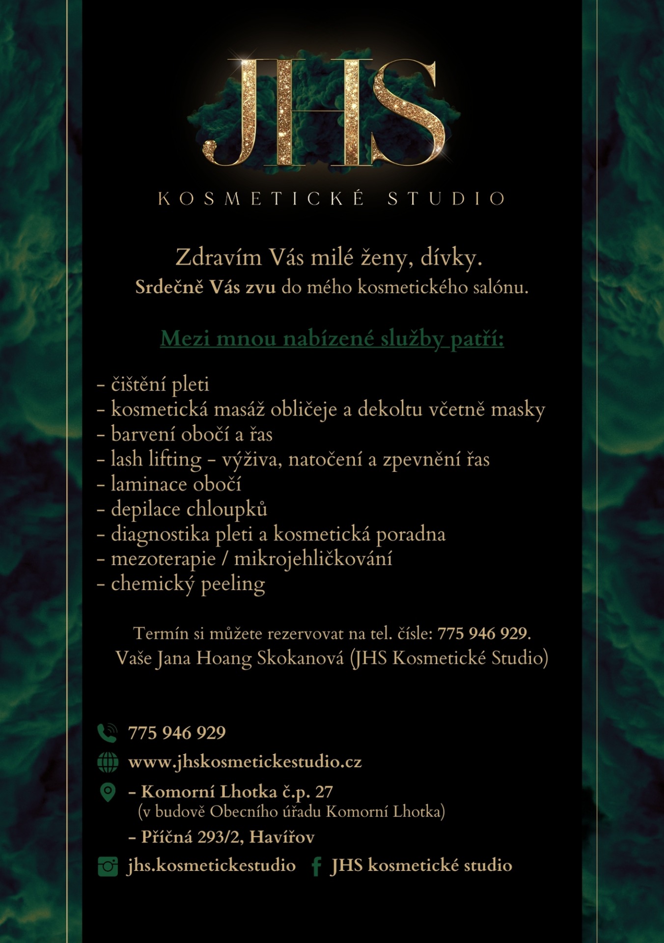 - depilace chloupků (obličej, předloktí, nohy, záda)